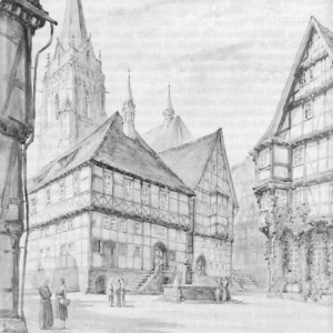 bild3 Das klassizistische Rathaus, wie wir es von heute kennen, hat einen eindrucksvollen Vorgänger. Fast 200 Jahre lang diente das abgebildete Fachwerkgebäude als Rathaus.
